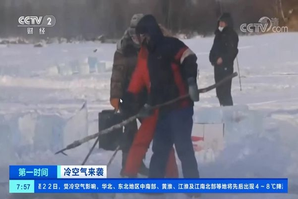 黑龍江漠河:寒冬時(shí)節(jié) 河面采冰忙