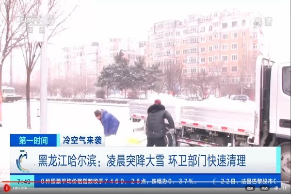 黑龍江哈爾濱:凌晨突降大雪 環(huán)衛(wèi)部門快速清理