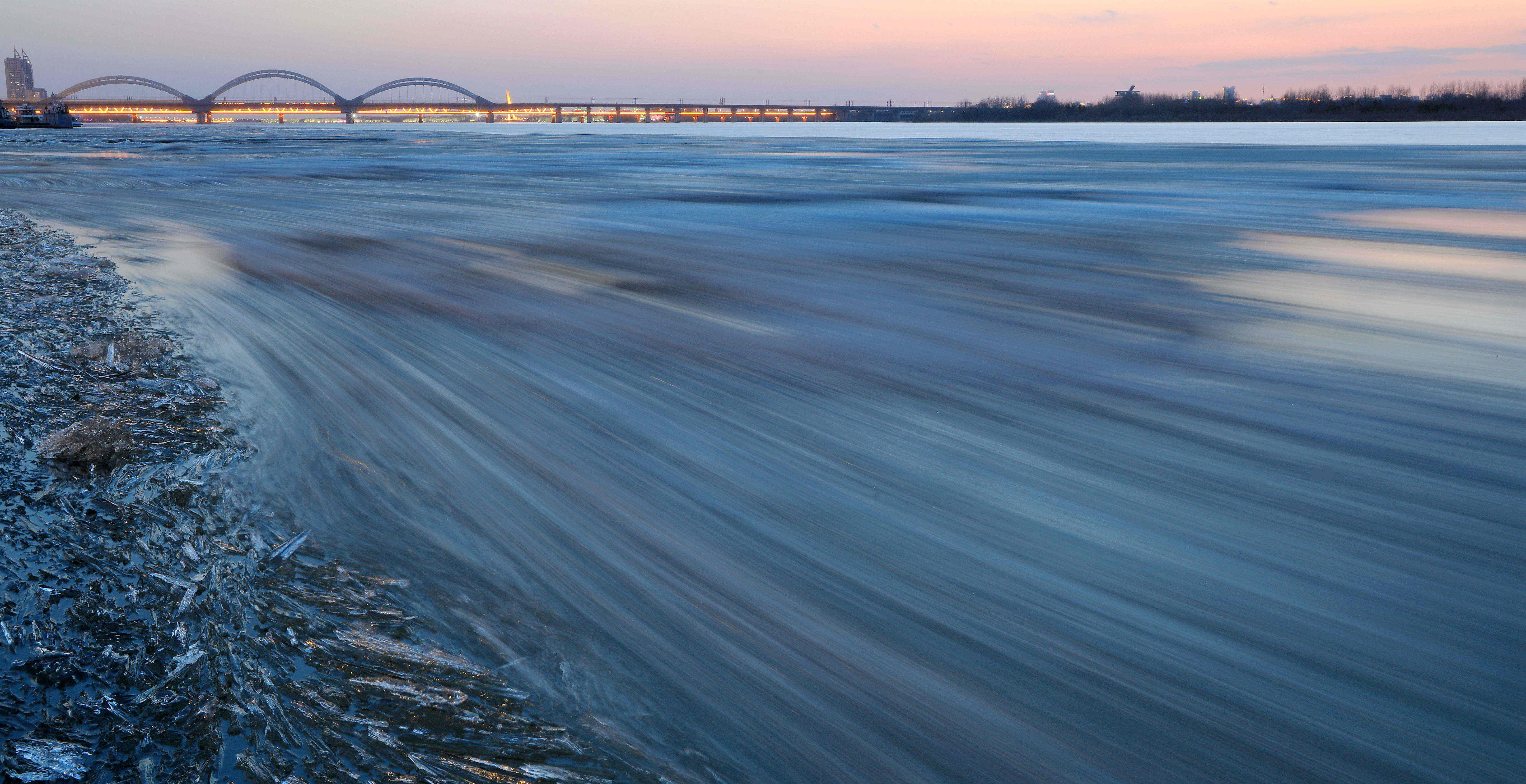 龍頭新聞?dòng)崳?span style="font-family: 宋體, SimSun; text-align: justify;">記者張澍)近日,松花江哈爾濱段開始跑冰排,揭開冰城春天的帷幕。跑冰排時(shí),水下的沉冰被擠上岸,夕陽下,形態(tài)萬千的冰刺、冰凌如水晶般晶瑩剔透,露出凝聚一冬的美。當(dāng)大大小小的冰排,從上游流向松浦大橋,在江中劃出道道曲線,氣勢勃發(fā)隨江水滾滾流淌。