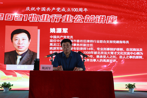 黑龍江省江山律師事務(wù)所律師副主任姚源軍做了《民法典所涉及物業(yè)行業(yè)的相關(guān)條款解讀》講座。姚源軍重點(diǎn)講解了《民法典》與物業(yè)管理、物權(quán)、合同、侵權(quán)責(zé)任及其他法律風(fēng)險(xiǎn)等內(nèi)容知識(shí);通過(guò)大量典型案例,圍繞物業(yè)管理涉及的法律問(wèn)題, 以及行業(yè)經(jīng)營(yíng)中的風(fēng)險(xiǎn)點(diǎn)、法律條款、解決思路、案例實(shí)務(wù),全面介紹了《民法典》視角下的物業(yè)管理責(zé)任邊界等內(nèi)容,幫助與會(huì)人員系統(tǒng)的了解了物業(yè)管理相關(guān)法律法規(guī)體系。