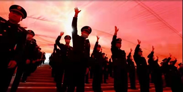 伴隨著激昂的樂(lè)曲,一面400平方米的巨幅黨旗緩緩展開(kāi),面向鮮紅的黨旗,在場(chǎng)的黨員干部和居民群眾心潮澎湃。100名黨員整齊列隊(duì),在領(lǐng)誓人的帶領(lǐng)下舉起右拳,莊嚴(yán)宣誓,重溫入黨誓詞,回望入黨初心,抒發(fā)對(duì)黨忠誠(chéng)的意志和信念。