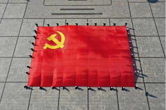 隨后,伴隨著雄壯的樂曲聲,黨旗接力傳遞開始,一面巨幅黨旗在黨員干部、職工群眾的手中徐徐傳遞......參加活動的黨員干部、職工群眾分別與黨旗合影,表達(dá)對偉大的黨和祖國母親的真摯祝愿。
