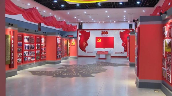 展廳中央懸掛著鮮艷的中國共產(chǎn)黨黨旗。在趙萬山領(lǐng)誓下,大家面對(duì)黨旗,舉起右手,重溫入黨誓詞。