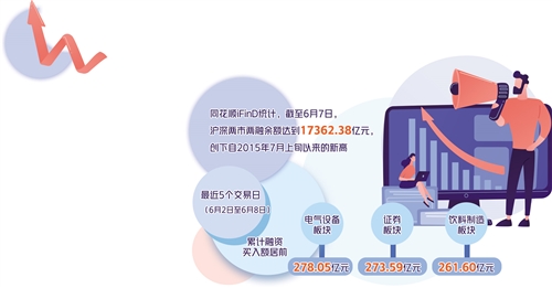 據(jù)同花順iFinD統(tǒng)計(jì),截至6月7日,滬深兩市兩融余額達(dá)到17362.38億元,創(chuàng)下自2015年7月上旬以來(lái)的新高;截至6月8日,融資余額為15857.35億元,同樣創(chuàng)下2015年7月上旬以來(lái)的新高。