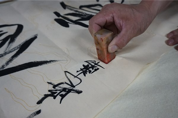 挽袖、研墨、調(diào)色、揮毫,書畫家們進(jìn)行現(xiàn)場書畫創(chuàng)作并交流創(chuàng)作心得。以書言志、以畫寄情,一幅幅極富感染力的書法、繪畫作品,抒發(fā)了對黨的敬愛之情和對祖國的美好祝愿?;顒蝇F(xiàn)場共展出書畫作品百余件。
