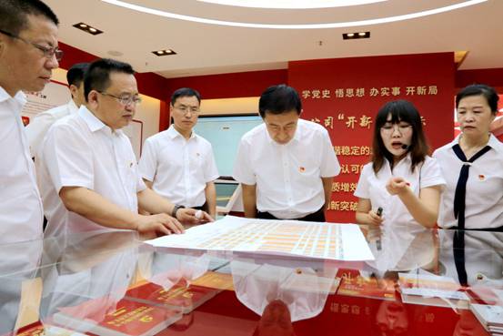 在地區(qū)黨史學(xué)習(xí)教育展館,面對(duì)鮮紅的黨旗,由區(qū)委書(shū)記王顯志領(lǐng)誓,區(qū)委理論學(xué)習(xí)中心組成員集體宣誓,重溫入黨誓詞,砥礪前進(jìn)初心,勇?lián)氊?zé)使命。