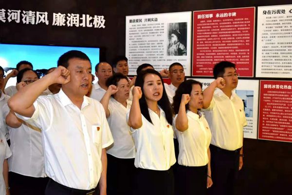 在漠河市廉政教育基地,塔河林業(yè)局研學(xué)交流團(tuán)成員在講解員生動(dòng)的講解下,依次參觀了“以古鑒今 廉潔中華”、“正風(fēng)肅紀(jì) 馳而不息”、“前車(chē)之鑒 警鐘常鳴”、“清正為民 廉潔風(fēng)范”四個(gè)篇章。通過(guò)一個(gè)個(gè)觸目驚心的腐敗案例、一幅幅發(fā)人深省的圖片和當(dāng)事人的懺悔實(shí)況錄像,對(duì)現(xiàn)場(chǎng)每一個(gè)人給以強(qiáng)烈的心靈震撼,進(jìn)一步提高了大家對(duì)反腐倡廉重大意義的認(rèn)識(shí)和感悟,筑牢防腐拒變思想防線。在深受警示教育的同時(shí),研學(xué)交流團(tuán)全體黨員干部高舉右拳,面對(duì)黨旗莊嚴(yán)宣誓,重溫入黨誓詞,并在“廉潔宣誓化于心,廉潔承諾重于行”橫幅上鄭重簽下自己的名字,表達(dá)了一定要樹(shù)牢不忘初心、勇?lián)姑⒘疂崗恼男拍詈蜎Q心。
