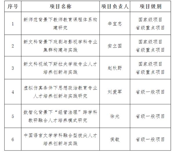 截止至8月5日,教育部首批新文科研究與改革實(shí)踐項(xiàng)目立項(xiàng)名單公示期結(jié)束,哈爾濱師范大學(xué)3項(xiàng)省級重點(diǎn)項(xiàng)目全部獲批國家級立項(xiàng),在省內(nèi)高校中名列前茅。這3項(xiàng)國家級項(xiàng)目分別是:辛寶忠教授主持的教育學(xué)領(lǐng)域新文科建設(shè)實(shí)踐項(xiàng)目《新師范背景下教師教育課程體系構(gòu)建研究》、安立國教授主持的藝術(shù)字領(lǐng)域新文科建設(shè)實(shí)踐項(xiàng)目《新文科背景下戲劇與影視學(xué)科專業(yè)集群構(gòu)建與實(shí)踐》、趙秋野教授主持的新文科復(fù)合型人才培養(yǎng)創(chuàng)新與實(shí)踐項(xiàng)目《新文科視域下斯拉夫?qū)W微專業(yè)人才培養(yǎng)創(chuàng)新與實(shí)踐》。