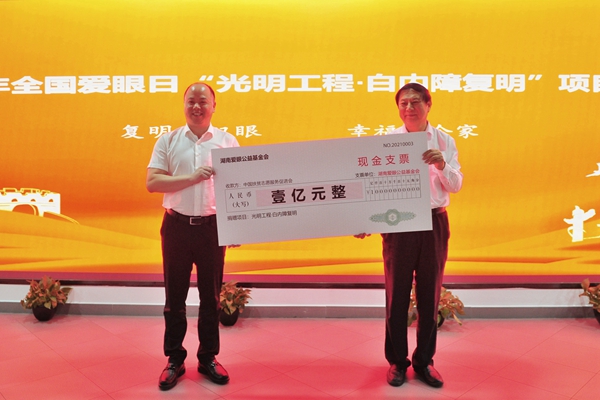今年愛(ài)眼日“光明工程·白內(nèi)障復(fù)明”項(xiàng)目座談會(huì)上,愛(ài)爾眼科通過(guò)愛(ài)眼公益基金會(huì)捐贈(zèng)1億元助力鄉(xiāng)村振興