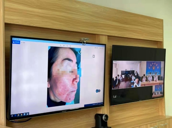 會診當(dāng)天,在5G網(wǎng)絡(luò)高速率、大帶寬、低時延的傳輸下,黑龍江省醫(yī)院遠(yuǎn)程醫(yī)療中心會議室大屏幕上,高清地顯示出了遠(yuǎn)在4400公里外的新疆阿勒泰地區(qū)人民醫(yī)院會診室畫面,兩地醫(yī)生透過屏幕開展了清晰、流暢地交流。在聽取了新疆阿勒泰地區(qū)人民醫(yī)院醫(yī)生對一例皮膚病患者和一例內(nèi)分泌科患者病情的介紹后,結(jié)合患者各項檢查結(jié)果,黑龍江省醫(yī)院皮膚病院皮膚一科魏娟主任和黑龍江省醫(yī)院內(nèi)分泌科段濱紅主任分別對患者的病情進行了詳細(xì)分析和診斷,并給出明確、具體的治療方案和建議。本次遠(yuǎn)程會診的成功實施,不僅使黑龍江省有效地對新疆阿勒泰地區(qū)開展醫(yī)療支援,使阿勒泰地區(qū)的病患受益匪淺,并為今后兩地的醫(yī)療交流打開新局面。