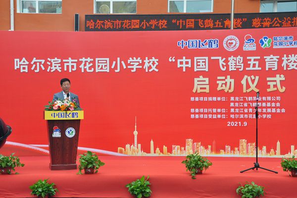 飛鶴乳業(yè)黨委書(shū)記、飛鶴慈善基金會(huì)理事長(zhǎng)朱天龍在啟動(dòng)儀式上說(shuō),在中秋國(guó)慶即將到來(lái)之際,我們滿懷喜悅的心情,在百年名校哈爾濱市花園小學(xué)校舉行“中國(guó)飛鶴五育樓”公益慈善助教項(xiàng)目啟動(dòng)儀式,這是飛鶴乳業(yè)履行社會(huì)責(zé)任、情系教育事業(yè)的又一項(xiàng)助教工程。在黑龍江省貫徹落實(shí)黨中央“雙減”政策,深入推進(jìn)五育并舉,促進(jìn)學(xué)生德智體美勞全面發(fā)展的重要時(shí)期。飛鶴向哈爾濱市花園小學(xué)捐贈(zèng)625萬(wàn)元,用于花園小學(xué)“五育樓”項(xiàng)目改造,這是一項(xiàng)利在當(dāng)代,功在千秋的公益慈善助教項(xiàng)目,旨在更好地優(yōu)化我省基礎(chǔ)教育教師學(xué)習(xí)培訓(xùn)環(huán)境,為花園小學(xué)教學(xué)提供更好的辦學(xué)條件,也是助力黑龍江省基礎(chǔ)教育的改革。省教育廳副廳長(zhǎng)姜同河、團(tuán)省委副書(shū)記張濤對(duì)飛鶴乳業(yè)的慈善助教善舉給予充分的肯定和贊許?;▓@小學(xué)校長(zhǎng)曹永鳴代表學(xué)校的孩子們飛鶴乳業(yè)的慈善捐助表達(dá)深深的謝意!