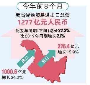 前8個(gè)月我省進(jìn)出口總值1277億元