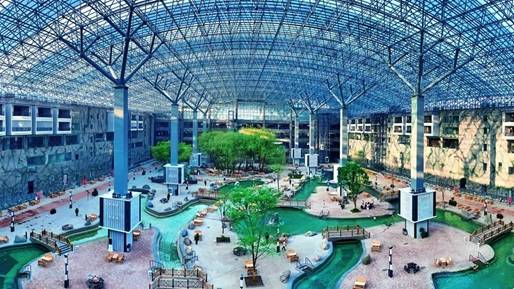 五大連池火山溫泉水世界是黑龍江省北部最大的室內(nèi)水上娛樂項目,總占地面積15.2萬㎡?;鹕綔厝澜缡且詼厝B(yǎng)生文化為主題,以火山為主要元素的園林式水上樂園。對游樂設(shè)施進(jìn)行文化植入、主題化包裝,建成集特色溫泉水上游樂、餐飲娛樂、休閑購物和旅游觀光于一體的室內(nèi)水上娛樂及溫泉養(yǎng)生綜合體。