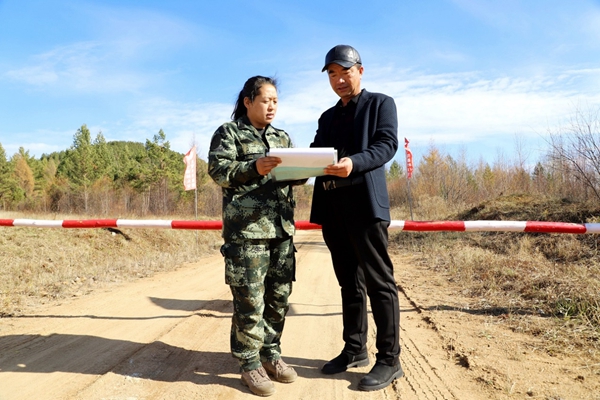 圖為紅旗林場第四管護(hù)站管護(hù)員孟祥茹(左)認(rèn)真做好入山人員信息登記,實(shí)現(xiàn)了人員可追溯、可查詢