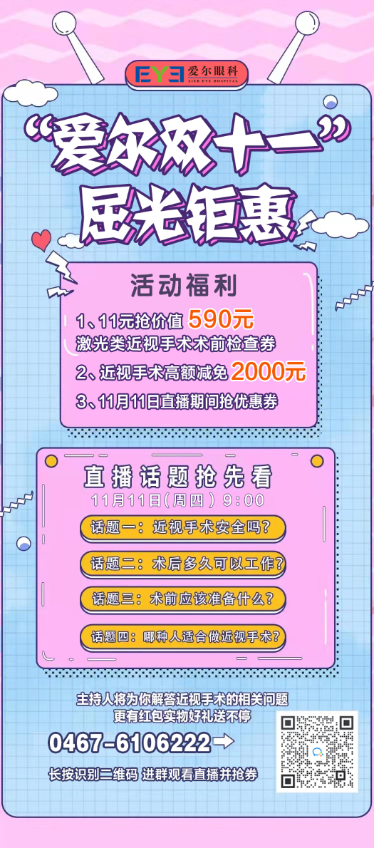 雞西愛爾眼科醫(yī)院近視手術(shù)雙十一鉅惠來襲!
