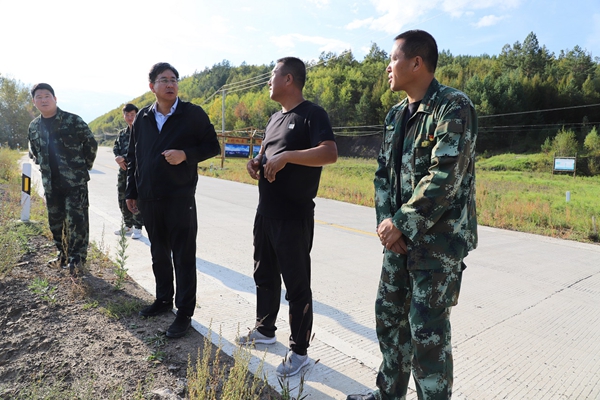 阿木爾林業(yè)局黨委副書記、局長(zhǎng)韓鳳泉(右三)深入到龍河林場(chǎng),檢查指導(dǎo)旅游產(chǎn)業(yè)工作(王力 攝)