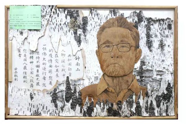 作品“生命衛(wèi)士鐘南山”采用大興安嶺原始森林優(yōu)質(zhì)樺樹皮粘貼而成,畫中鐘南山院士表情凝重,目光堅(jiān)毅,展現(xiàn)了一名共產(chǎn)黨員面對疫情無私奉獻(xiàn)的決心。作品“蘭閨雅集圖”,情致盎然、祥和靈動(dòng),給人以和諧、溫馨,讓人心生美好。