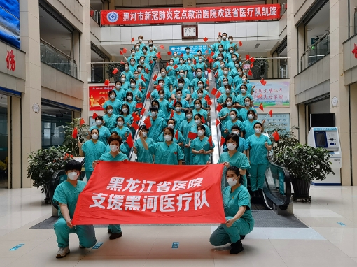 醫(yī)療隊抵達黑河后即迅速成立了臨時黨支部,由總指揮商曉英副院長擔任支部書記,充分發(fā)揮基礎黨組織戰(zhàn)斗堡壘作用,堅守初心、踐行使命,加強抗疫一線黨的建設,團結帶領了所有黨員及全體群眾,對黨忠誠、勇于擔當、頑強堅守。期間,得到了省衛(wèi)健委、黑河市委市政府、黑河抗疫指揮部等各級領導的關懷、認可和鼓勵,也得到了國家、省級專家組的科學指導和一致好評。醫(yī)療隊精湛的救治水平、無微不至的服務關懷更是得到了每一位患者的點贊。