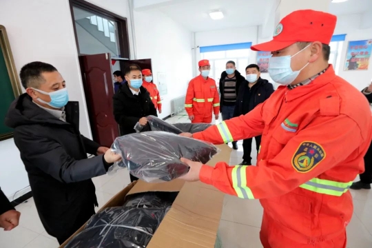 在森林消防大隊(duì)一樓活動(dòng)室,司勇、張志良親切地與大隊(duì)干部職工交流談心,詳細(xì)了解森防隊(duì)員們的工作生活情況以及思想狀況,對(duì)他們“舍小家為大家”的敬業(yè)精神表示感謝,并逐一為隊(duì)員們分發(fā)了防寒羽絨服?!耙路笮『喜缓线m,穿在身上暖不暖和……”深切話語(yǔ)讓森防隊(duì)員們備感關(guān)懷,備受鼓舞,喜悅之情溢于言表。