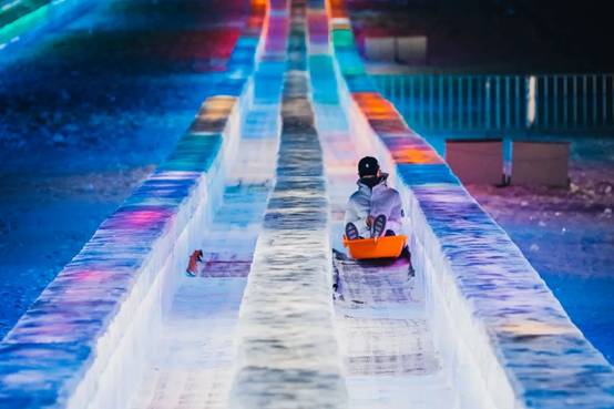 作為哈爾濱冰雪大世界最具人氣的游樂(lè)項(xiàng)目,今年的超級(jí)冰滑梯滑道長(zhǎng)達(dá)423米,高低落差達(dá)21米,100米滑行速度快過(guò)蘇炳添創(chuàng)造的9秒83新亞洲紀(jì)錄,游客乘坐大滑梯時(shí)也能體驗(yàn)一把飛人的感覺(jué)。