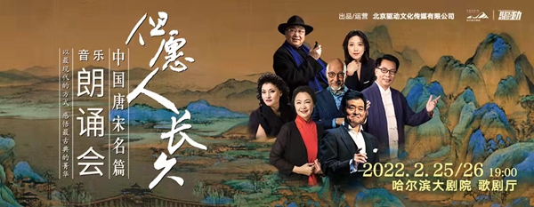 2月25、26日,“但愿人長久——中國唐宋名篇音樂朗誦會(huì)”將以全新陣容再度亮相冰城舞臺(tái),由指揮家高嵩執(zhí)棒,黑龍江省歌舞劇院有限公司交響樂團(tuán)、民族樂團(tuán)、合唱團(tuán)共同呈現(xiàn),朗誦表演藝術(shù)家濮存昕、喬榛、張晶、張宏聯(lián)袂著名歌唱家楊小勇、么紅,以詩樂相伴的方式再現(xiàn)盛唐兩宋的詩詞歌賦。
