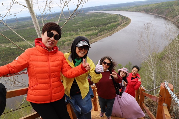 游客深入到阿木爾林業(yè)局銀環(huán)島最佳觀景平臺(tái),飽覽祖國(guó)的大美風(fēng)光(王力 攝)