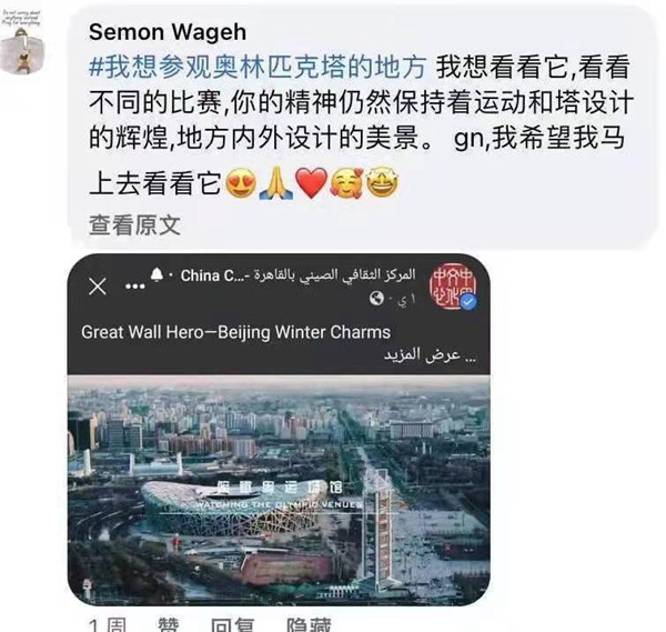 2022年年初,根據(jù)埃及社會、文化特點和民眾喜好,開羅中國文化中心創(chuàng)新推出了2022“北方冰雪旅游海外推廣季”之“我最想去的地方”線上評選活動,邀請埃及各界友人參與話題互動,在中心主題帖文下寫出自己最想去的中國省份(或城市)及原因,曬出旅游目的地圖片并打上話題標簽等。活動一經推出,即受到埃及民眾的廣泛關注,網友們紛紛在中心臉書帖文下留言并轉發(fā),評選自己“最想去的中國冰雪旅游勝地”,并熱情附上自己之前在華留學、訪問、旅游、生活的旅游體驗和文化閱歷,活動二次外溢效應明顯,二次傳播效果良好,旅游推廣和文化傳播的效果遠遠高于預期?;顒悠陂g,該活動主體帖文總覆蓋人數(shù)近40萬,收到網友評論近2100條,互動近4.5萬次。