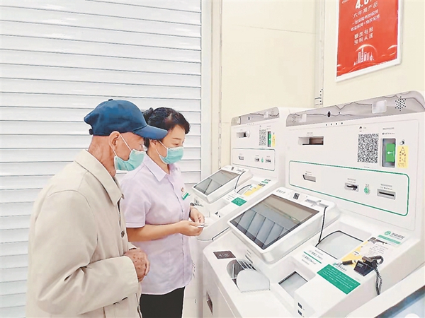 銀行工作人員指導老年人辦理業(yè)務(wù)破解數(shù)字鴻溝。