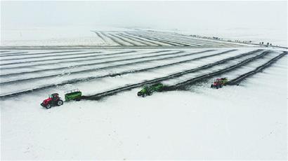 黑龍江經(jīng)濟(jì)網(wǎng)訊(姚愛(ài)群 于淑鴻)眼下,黑河遜克省級(jí)農(nóng)業(yè)科技園區(qū)的耕地上還覆蓋著厚厚的積雪,可原野上隆隆的機(jī)械揚(yáng)起陣陣飛雪,三臺(tái)大型肥料拋撒車(chē)和工人頂風(fēng)冒雪開(kāi)展施肥作業(yè),均勻拋撒著新型有機(jī)肥料——“土壤改良劑”。