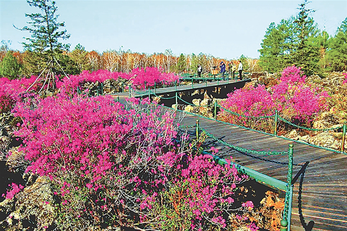 興安杜鵑有很多動聽的名字,達(dá)子香、滿山紅、映山紅等,朝鮮族叫它“金達(dá)萊”,野生興安杜鵑被列為國家重點(diǎn)保護(hù)二級野生植物。一簇簇,一片片,艷如桃李、燦若云霞、熱情似火、暗香四溢,游覽采風(fēng)的人們紛至沓來。
