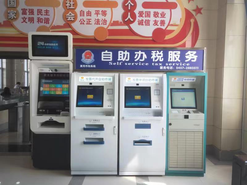 漠河市稅務(wù)局在政務(wù)服務(wù)大廳配置了3臺(tái)自助辦稅終端,分別是發(fā)票代開(kāi)自助終端、發(fā)票申領(lǐng)自助終端和定額發(fā)票申領(lǐng)終端。