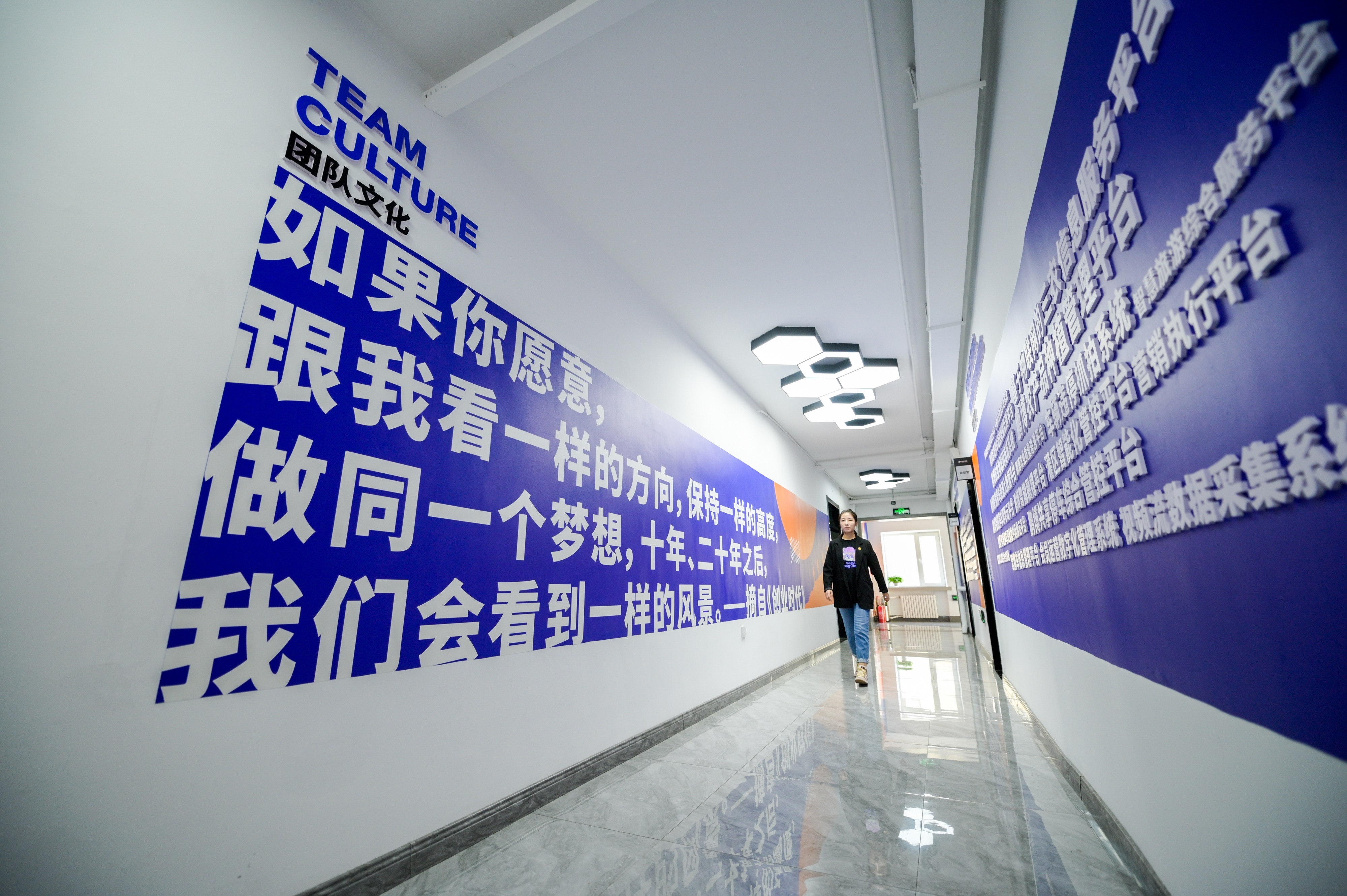 “如果你愿意,跟我看一樣的方向,保持一樣的高度,做同一個(gè)夢(mèng)想,十年、二十年之后,我們會(huì)看到一樣的風(fēng)景?!薄白尮ぷ骱蜕罡悄堋薄哌M(jìn)鵬博集團(tuán),隨處可見(jiàn)勵(lì)志標(biāo)語(yǔ),年輕的員工們正滿(mǎn)懷熱情地在電腦前敲擊著鍵盤(pán)。