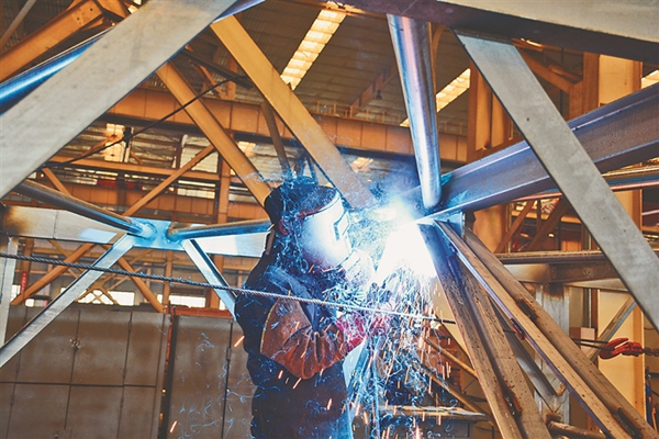 焊花四濺。