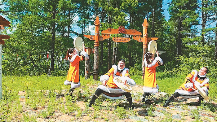 在新生鄂倫春族鄉(xiāng),舞蹈演員們伴隨著鼓聲跳動著,生動展示著鄂倫春族舞蹈和服飾。在民族體驗區(qū),非遺傳承人拿出看家本領(lǐng),紛紛展示非遺魅力,鄂倫春族剪紙、樺樹皮制作、刺繡、皮袍制作……鄂倫春族原汁原味的傳統(tǒng)技藝一一呈現(xiàn)眼前。