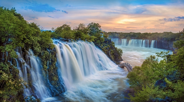 兩條毫無(wú)污染而清澈的高山河流——金溪谷和銀溪谷川流不息,多處跌水形成了罕見(jiàn)且壯觀的九疊泉瀑布群,其秀麗的自然風(fēng)光如人間仙境一般,素有“北國(guó)小九寨”之美稱。