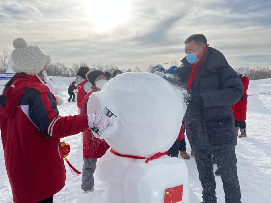嘉賓們還與留守兒童們暢游雪博會(huì),開啟了冰雪之旅。他們一同欣賞獨(dú)具匠心的壯麗雪雕,用心感受這座城市的冰雪文化,手拉手暢玩在零下十幾度的冰天雪地,為留守兒童們留下屬于這個(gè)冬天最珍貴的美好回憶。在雕刻指導(dǎo)教練的耐心講解中,共青團(tuán)省委副書記夏天和留守兒童們共同完成了蘊(yùn)含著特殊意義的“宇航員”雪雕,它將承載著希望與愛迎接2023年的春暖花開。