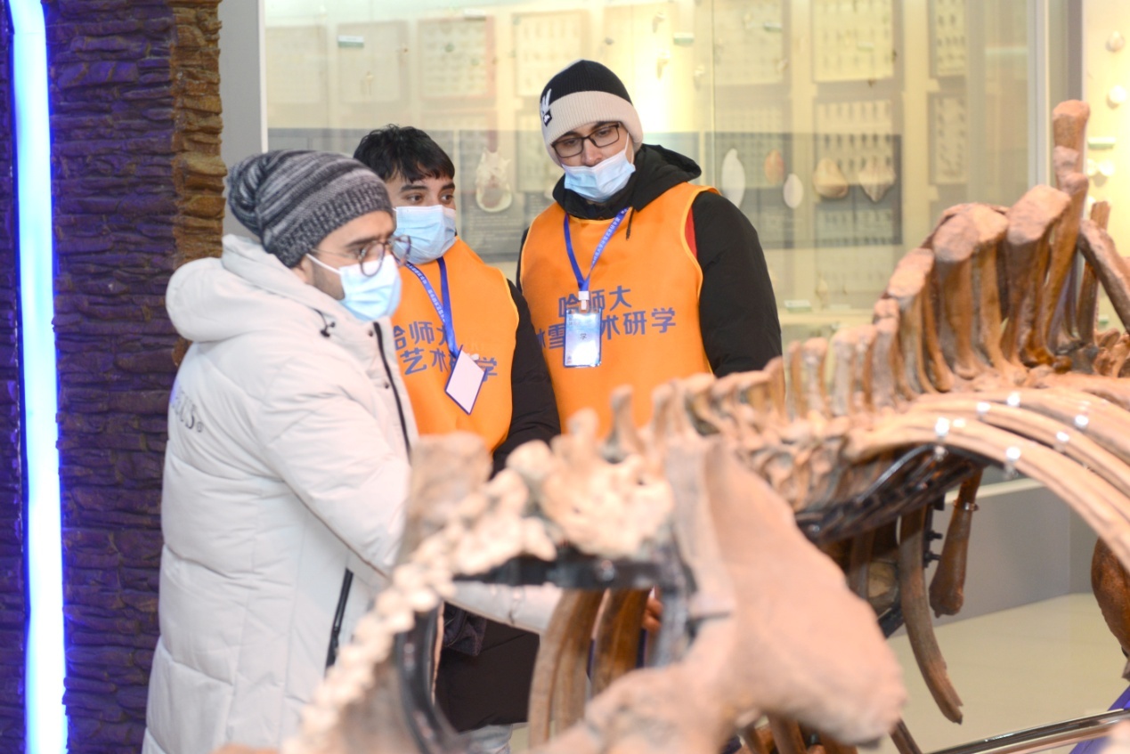 下午,共同走進(jìn)哈爾濱師范大學(xué)。在哈師大文博館,化石、甲骨片、石器、陶器等文物珍品,將中國(guó)文化展現(xiàn)給各國(guó)青年,讓留學(xué)生感受中國(guó)的悠久歷史,了解中華文化的博大精深。在哈師大動(dòng)植物標(biāo)本館,森林景觀、草原景觀、大型鳥獸、植物標(biāo)本等13個(gè)展區(qū),像一部厚重的生物史和生物多樣性教科書,展現(xiàn)了千姿百態(tài)、栩栩如生的生命畫卷。