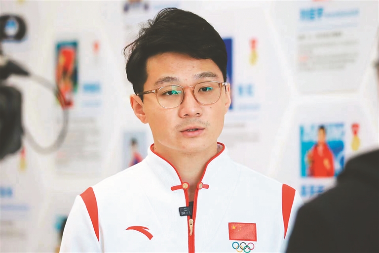 任子威、曲春雨分別接受采訪。 本報記者 張澍攝