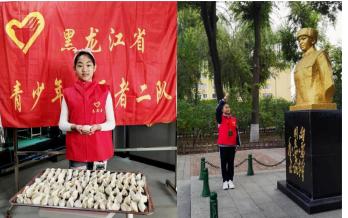 小學(xué)時,當(dāng)?shù)弥闪ⅰ昂邶埥∏嗌倌曛驹刚呖傟?duì)”時,她積極申請,作為首批青少年志愿者加入,并擔(dān)任 “黑龍江省青少年志愿者二隊(duì)”青少年小隊(duì)長,擁有了自己的“紅馬甲”。在擔(dān)任隊(duì)長期間,她策劃、組織、參加了 “包凍餃子送溫暖”、公益圖書館“一本書的旅行”、環(huán)保時裝秀“世界因我而美麗”活動;參加交通普法宣傳“文明先行大愛公益” “美化井蓋共筑文明城市”垃圾分類、文明祭掃、急救科普、綠色出行、防止溺水、關(guān)愛盲人等各種志愿服務(wù)活動。努力做好模范帶頭作用,用實(shí)際行動詮釋“不計(jì)報酬、幫助他人、服務(wù)社會”的志愿誓言。