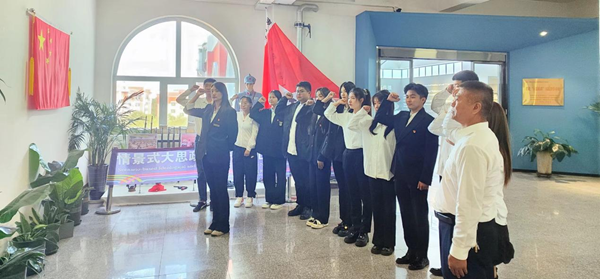 在課程結(jié)束之際,少先隊(duì)員發(fā)出了“勿忘國(guó)恥 吾輩自強(qiáng)”的錚錚誓言;黑龍江外國(guó)語學(xué)院藝術(shù)系輔導(dǎo)員張博雅帶領(lǐng)在場(chǎng)全體黨員重溫了入黨誓詞。短短的十二句話,道出了中國(guó)共產(chǎn)黨的百年奮斗歷程,凝聚著每一名黨員不忘初心、堅(jiān)守理想的信念與力量。面對(duì)黨旗,全體黨員莊嚴(yán)地舉起右拳宣誓,表達(dá)了矢志不渝跟黨走的決心和勇?lián)姑?、不?fù)黨恩的堅(jiān)定信念。