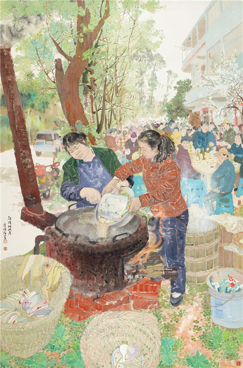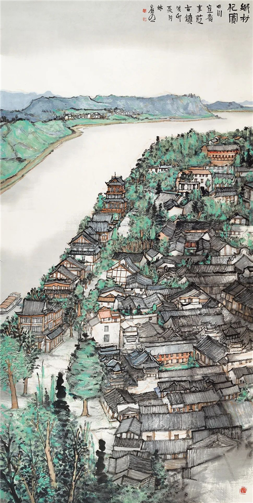 林容生 鄉(xiāng)村紀(jì)實(shí)·宜賓李莊古鎮(zhèn) 234cm×123cm 國(guó)畫