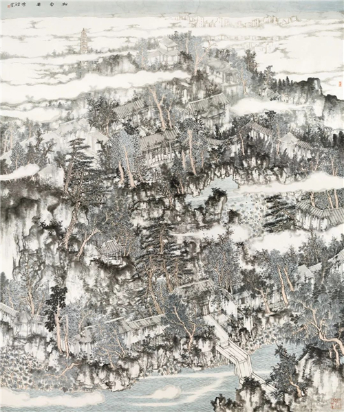 何加林 松云罨秀 240cm×200cm 國(guó)畫