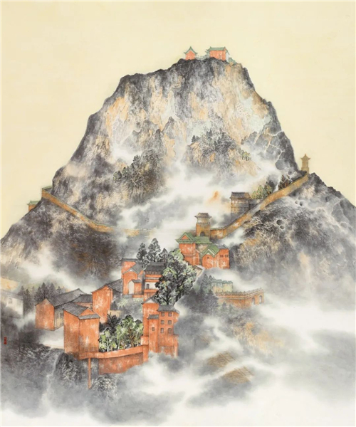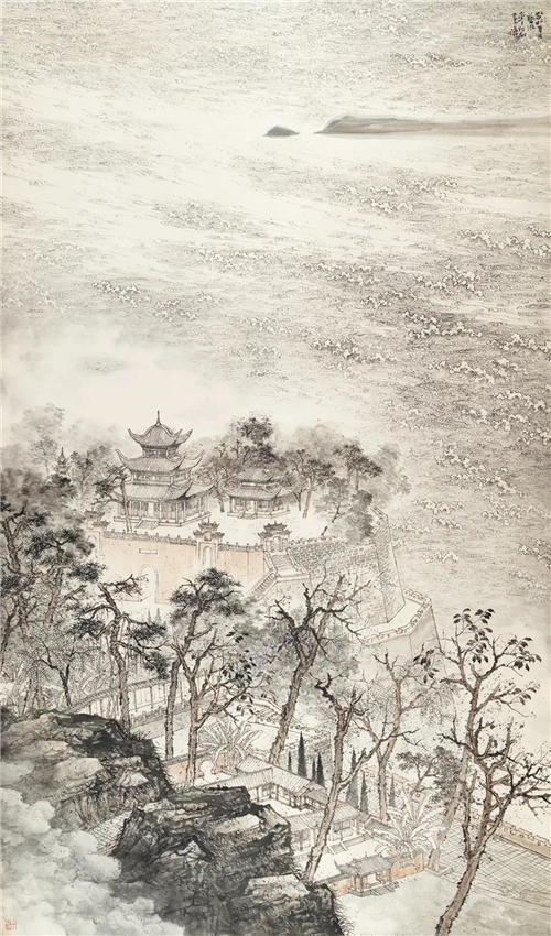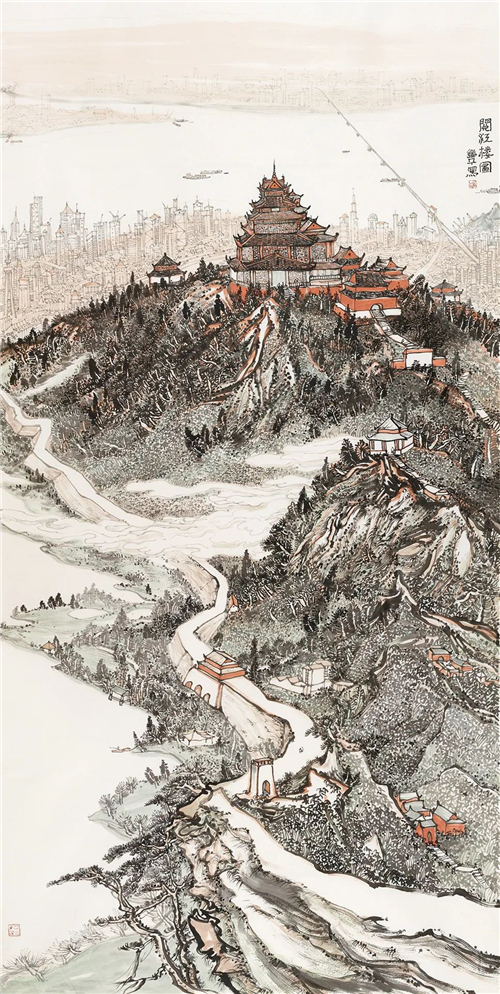朱道平 閱江樓圖 234cm×123cm 國(guó)畫