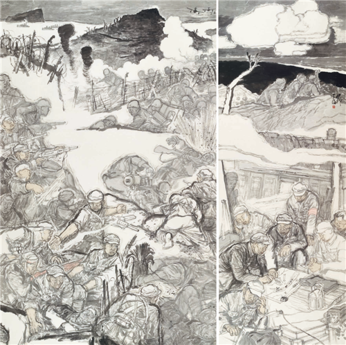 鄭天倫 渡江戰(zhàn)役第一槍 245cm×240cm 國(guó)畫