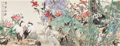 于文江、賈廣健、姚大伍、陳鵬、李乃宙、郭子良 美好家園 145cm×365cm 國(guó)畫