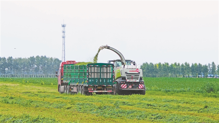 盛夏時(shí)節(jié),走進(jìn)安達(dá)市老虎崗鎮(zhèn)永和村的大麥飼草復(fù)種大豆試驗(yàn)示范田,一粒粒大豆種子伴著播種機(jī)的轟鳴聲落地,地頭另一側(cè)則堆著即將裝車的大麥飼草。
