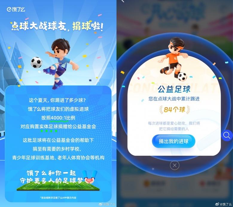 餓了么上線公益足球捐贈:讓數(shù)千萬個游戲進球變身實物足球捐給需要的人