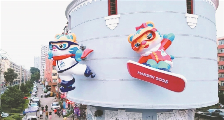 “站在過街天橋上望去,一眼就看見‘水樓子’上多了‘濱濱’‘妮妮’,我就過來打個(gè)卡,之后再帶孩子一起來看看。第九屆亞冬會(huì)即將在哈爾濱召開,作為哈爾濱人我感到特別自豪。”市民曹女士說。