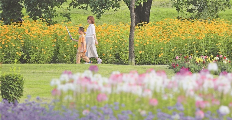 夏日的太陽島風(fēng)景區(qū),花團錦簇,百余個品系的花卉爭奇斗艷,幽香陣陣,吸引大批游客來此打卡。