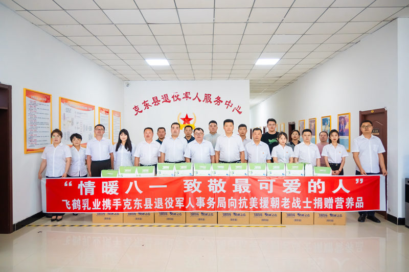 在建軍節(jié)來(lái)臨之際,飛鶴乳業(yè)攜手黑龍江省退役軍人事務(wù)廳、齊齊哈爾市退役軍人事務(wù)局,向黑龍江省榮軍醫(yī)院和齊齊哈爾市建華區(qū)、龍沙區(qū)、鐵鋒區(qū)以及克東縣的退役軍人、抗美援朝老戰(zhàn)士、軍烈屬,捐贈(zèng)了飛鶴營(yíng)養(yǎng)品,并為部分生活困難軍人送去了慰問(wèn)金,表達(dá)了對(duì)軍人職業(yè)的尊崇,對(duì)退役軍人的尊重、關(guān)心與關(guān)愛(ài)。(蘭天偉)